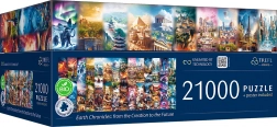 Creëer thuis een uniek panorama – deze reuzenpuzzel met in totaal 21.000 stukjes toont de kroniek van de Aarde van haar ontstaan tot aan toekomstvisies. Elk van de 14 afbeeldingen (van 1500 stukjes) is apart verpakt, zodat u kunt beginnen waar u wilt en ze dankzij de UFT-technologie geleidelijk kunt verbinden tot één grootse compositie.