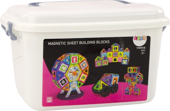 Magnetische constructieset in koffertje 118 stuks: waterrad, gebouwen, stickers. Sterke magneten, duurzame onderdelen, stimuleert creativiteit en logisch denken. Ideaal voor onderweg.