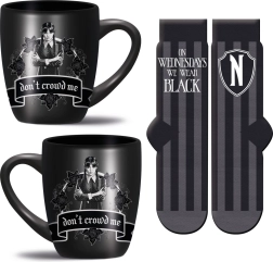 Zoek je een origineel cadeau voor fans van WEDNESDAY? Deze praktische set combineert dagelijks comfort en stijl. De keramische mok van 315 ml is ideaal voor koffie of thee en kan zonder zorgen in de vaatwasser en magnetron. De zachte sokken in de universele maat 36–41 zitten prettig en passen zich gemakkelijk aan de voet aan.