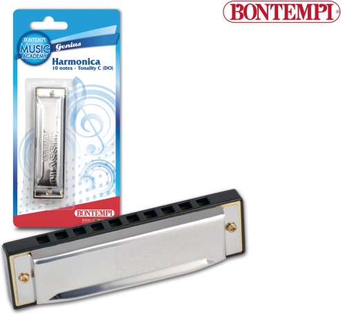 Metalen mondharmonica met metalen rooster, 10 noten, afmeting 100 x 20 x 30 mm