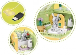 De geïntegreerde USB‑verlichting laat het interieur van het huisje stralen en benadrukt de details van planten en meubilair. Eenvoudig aan te sluiten, opvallend visueel effect.