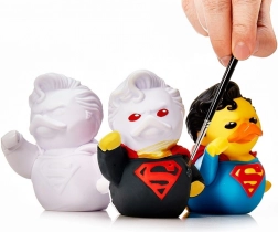 Maak je eigen held met deze witte TUBBZ rubberen eend in Superman-stijl. Klaar voor je eigen ontwerp en creatieve beschildering!