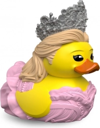 Het Tubbz eendje pronkt met een elegant ontwerp met een roze jurk en een zilveren kroon, wat een magische uitstraling geeft.
