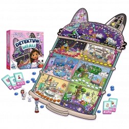 Een detective-avontuur voor kinderen en ouders, gesitueerd in de geliefde wereld van Gabby’s Kattenclubhuis. Het spel Detective Miauw draait om snelle oriëntatie, gezamenlijke beslissingen en zorgvuldig speuren naar details op het grote speelbord. Jullie doel is de juiste sporen te vinden en de saboteur te stoppen voordat het te laat is.