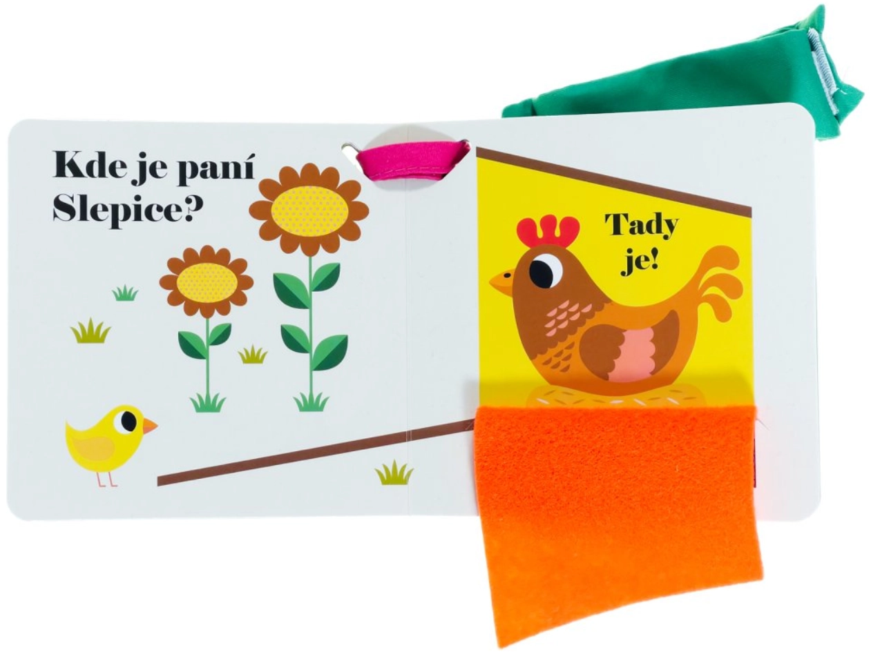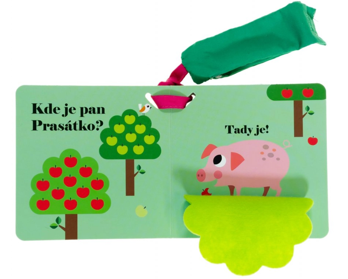 Een schattig boekje voor de allerkleinsten met verborgen boerderijdieren, dat je direct aan de kinderwagen kunt bevestigen. Eigenschappen en voordelen: - Geschikt voor de eerste kennismaking met de wereld van baby’s. - Stimuleert zicht, tast en motorische vaardigheden. - Kinderen gaan op zoek naar verstopte huisdieren van de boerderij. - Zachte vilten flapjes helpen de wereld te ontdekken via de tastzin. - Aan het einde van het boek zit een verrassing in de vorm van een klein rond spiegeltje waarin kinderen zichzelf kunnen zien. - Dankzij het kleine formaat en de mogelijkheid om het aan de kinderwagen te bevestigen is het de ideale reisgenoot. Technische specificaties: - Aantal pagina’s: 10 - Binding: Leporello met flapjes - Jaar van uitgave: 2022 - ISBN: 978-80-256-3092-1