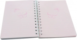 Verschillende pastelkleuren met een opvallend 'Butterfly'-ontwerp op de omslag geven het notitieboekje een persoonlijk tintje.