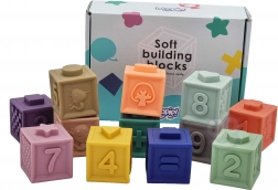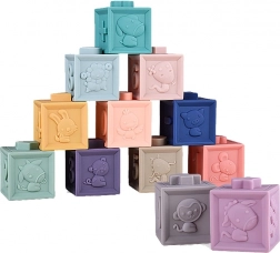 Dankzij verschillende vormen en texturen bevorderen de blokken de ontwikkeling van motorische en handmatige vaardigheden van het kind.