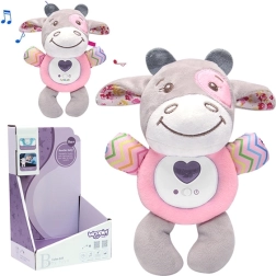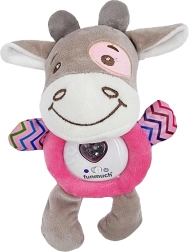 Interactieve pluchen kalf kalmeert en helpt je kind in slaap te vallen. Het speelt wiegeliedjes af en projecteert gekleurde lichtjes die kleine ontdekkers boeien. Deze zachte pluchen vriend is de compagnon van je kind vanaf de vroegste leeftijd.
