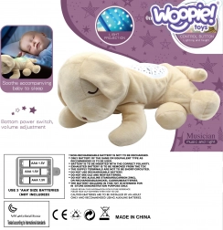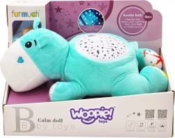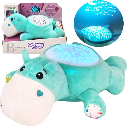 Het pluche nijlpaard WOOPIE BABY creëert voor het slapengaan een gezellige sfeer dankzij het zachte licht van de projector en ontspannende slaapliedjes met natuurgeluiden. De lichtjes veranderen vloeiend van kleur en projecteren sterren, maan en planeten, wat kinderen een veilig gevoel geeft.