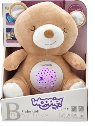 Zoek je een zachte helper voor rustige avonden? Deze pluche beer van WOOPIE BABY combineert een nachtlampje met subtiel wisselende kleuren en rustgevende geluiden – van witte ruis tot hartslag. Daarbovenop biedt hij 10 prachtige slaapliedjes die een fijne sfeer creëren om in slaap te vallen.