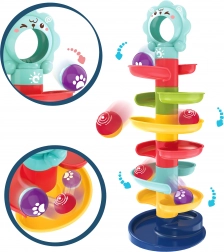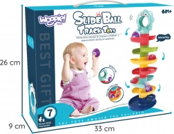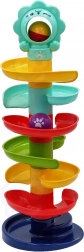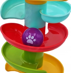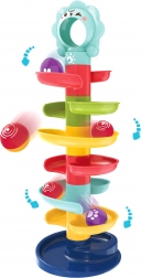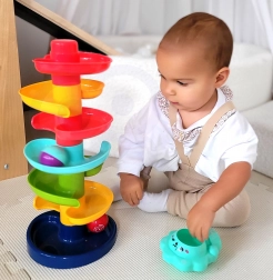 Deze unieke knikkerbaan van het merk Woopie is een ideale speelelement voor kinderen vanaf 6 maanden. Door de spiraaltoren kunnen kinderen de kogeltjes volgen terwijl ze naar beneden rollen, wat helpt bij het ontwikkelen van hun coördinatievaardigheden en visuele volgvermogen. De grootte en het gewicht van de kogeltjes zijn ideaal voor kleine kinderhandjes, wat gemakkelijk hanteren mogelijk maakt.