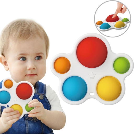 De siliconen bubbels komen in verschillende kleuren en zijn bedoeld om in te drukken, wat helpt bij het ontwikkelen van fijne motoriek en zintuiglijke vaardigheden.