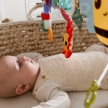 Dankzij de elasticiteit kan het eenvoudig aan een kinderwagen, autostoeltje of ledikant worden bevestigd.
