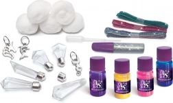 Met de creatieve set Nebulous Stars maak je een originele ketting met een flesje waarin je je geheime wens verstopt. De werkwijze is eenvoudig en leuk – kies kleuren, voeg glitters toe en creëer magische lagen die een gewoon flesje veranderen in een persoonlijke talisman. Ideaal voor kleine makers die van kleuren, fantasie en eigen projecten houden.
