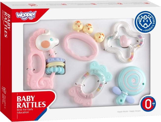 De WOOPIE Baby-set biedt een doordachte combinatie van bijtringen en rammelaars die gevoelige tandvlees verzachten en tegelijk de zintuigen van je kind prikkelen. Diverse vormen en oppervlakken wekken natuurlijke nieuwsgierigheid, ondersteunen de oog-handcoördinatie en de fijne motoriek. Levendige kleuren en zachte rammelgeluiden helpen bij het ontwikkelen van aandacht en perceptie.