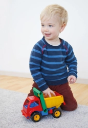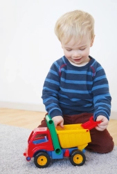 Ontdek een robuuste kiepwagen voor kinderen die zelfs wild spel moeiteloos aankan. Dankzij de hoogwaardige afwerking en stevige constructie is hij geschikt voor dagelijks gebruik in huis, in de tuin en op de speelplaats. De mechanische bediening vereist geen batterijen en stimuleert de natuurlijke kinderlijke fantasie.