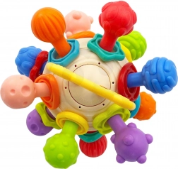 De Kleurige Rumba Bal van het merk WOOPIE is ontworpen om de aandacht van kinderen te trekken en hun ontwikkeling te stimuleren met verschillende texturen en geluidseffecten. Het speelgoed is ideaal vanaf de geboorte en combineert de functies van een bijtring en een rammelaar in één. De constructie is comfortabel voor kleine handjes en veilig dankzij het ontbreken van scherpe randen.