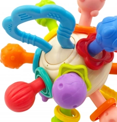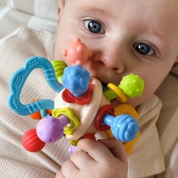 Combineert de eigenschappen van een bijtring en een rammelaar, en biedt kinderen verschillende manieren om te spelen.