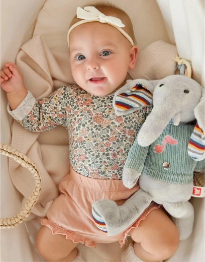 Het schattige en comfortabele design zorgt ervoor dat de knuffel ideaal is om te omarmen en je kindje te kalmeren.