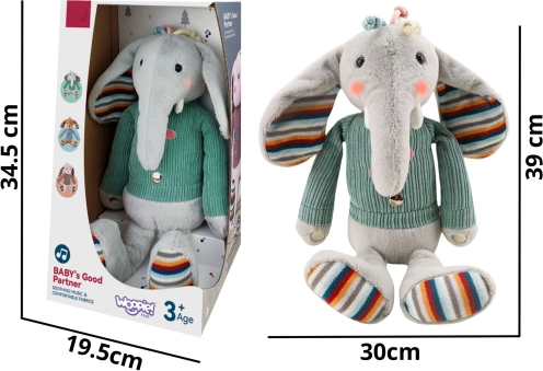 De interactieve pluchen olifant van het merk Woopie kalmeert en helpt je kind in slaap te vallen. Hij is niet alleen een schattige, zachte en knuffelige metgezel, maar ook een geweldige partner voor spel en plezier.