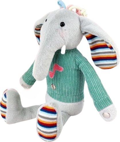De interactieve pluchen olifant van Woopie is uitgerust met drie sensorzones op de voeten en de buik die bij aanraking muziek afspelen. De roze wangetjes lichten op, wat een magische sfeer rond het speeltje creëert. De knuffel draagt een trui, waaronder ruimte is voor 3 batterijen. Deze zachte aanraak-olifant wordt een vriend voor je kind voor vele jaren.