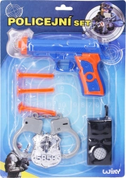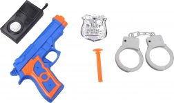 De set bevat een pistool met zuignappijlen voor veilig schieten, een badge voor de echte politielook, handboeien om dieven te “arresteren” en een walkietalkie voor het coördineren van acties. De set is geschikt voor kinderen vanaf 3 jaar en ondersteunt de ontwikkeling van de fantasie en rollenspel.
