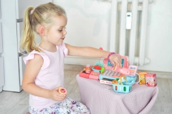 Winkeltje spelen stimuleert communicatie, samenwerking en basis financiële geletterdheid. Kinderen kunnen producten scannen, fruit en groenten “wegen”, prijzen intoetsen en kiezen voor contant of kaartbetaling. De hoogwaardige, veilige kunststof zorgt voor langdurig en veilig speelplezier.