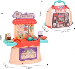 Deze kleurrijke set brengt kinderen een wereld vol zoetigheden – van donuts en cupcakes tot ijs – en heeft tegelijk een praktische constructie die in een mum van tijd verandert van een compact koffertje in een volwaardige toonbank. Dankzij de schouderriem dragen kinderen hem comfortabel en kunnen ze overal hun eigen mini-banketbakkerij openen.