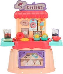 Inclusief ijsjes, donuts, snoepjes, schaaltjes, doosjes en andere accessoires voor realistisch winkeltje- en banketbakkerspel.