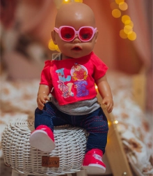Modieuze kleding voor poppen LOVE zonnebril en schoentjes 43-46 cm