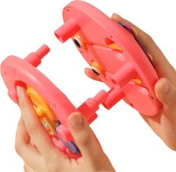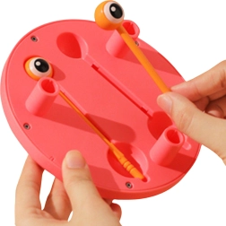 Uitneembare “oogjes” dienen als stokjes. Kinderen kunnen op de gekleurde toetsen tikken en zo ritme, gehoor en oog-handcoördinatie oefenen.