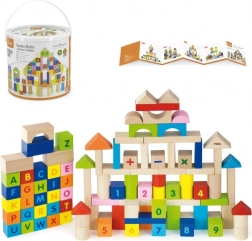 Deze kleurrijke set van 100 houten VIGA-blokken, geïnspireerd door MONTESSORI-principes, brengt kinderen plezier in het ontdekken van letters, cijfers en eenvoudige rekenoefeningen. Dankzij de verschillende vormen – blokken, cilinders, bogen en daken – kunnen kinderen steden, torens en fantasiebouwwerken creëren, terwijl ze spelenderwijs het alfabet, tellen en kleuren oefenen.