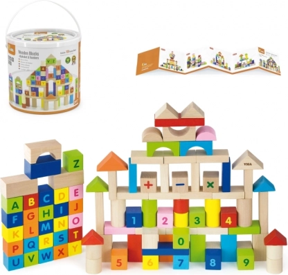viga houten educatieve blokken 100 stuks – letters en cijfers