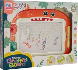 Het magnetische tekenbord van WOOPIE met een vrolijk dinosaurusmotief is ideaal voor de eerste strepen, vormen en letters. Kinderen kunnen vrij creëren, wissen en opnieuw tekenen – zonder papier en zonder rommel. Deze speelgoedset ondersteunt de fijne motoriek, fantasie en creativiteit en stimuleert het kind op een natuurlijke manier tot schrijven en tekenen.