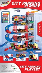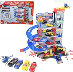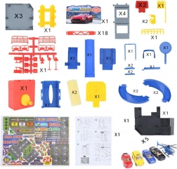 In de verpakking zit alles voor direct speelplezier: 4 metalen autootjes, een helikopter, verkeersborden, pylonen, oprijonderdelen, een lift en stickers om een realistische omgeving te creëren. De duurzame kunststof constructie is licht, stabiel en geschikt voor dagelijks spelen.