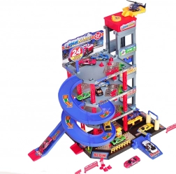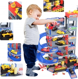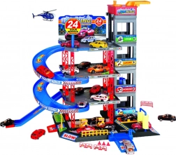 Ontdek eindeloos speelplezier met de meerlaagse parkeergarage van Woopie, met een autowasstraat, handmatige lift, tankstation, service en heliport. Inclusief 4 metalen autootjes en een helikopter, plus spiraalvormige afritten, verkeersborden en veel accessoires voor creatief spel en de ontwikkeling van de fijne motoriek voor kinderen vanaf 3 jaar.