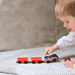 Sterke maar veilige magneten laten kinderen de wagons eenvoudig aankoppelen en loskoppelen. Het samenstellen van de trein is snel en leuk.