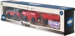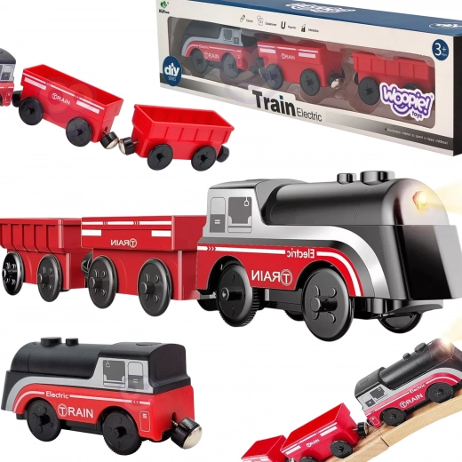 De elektrische locomotief WOOPIE met magnetische wagons bezorgt kinderen urenlang creatief speelplezier en helpt bij de ontwikkeling van fijne motoriek en bewegingscoördinatie. Dankzij de sterke maar veilige magneten koppelen de wagons eenvoudig, de locomotief werkt op batterij en licht op tijdens het rijden. Compatibel met de meeste houten spoorbanen van bekende merken.