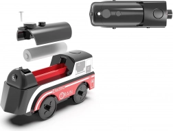 De locomotief rijdt op 1× AAA-batterij en het lampje gaat aan tijdens het rijden. Een realistische ervaring zonder ingewikkelde instellingen.
