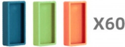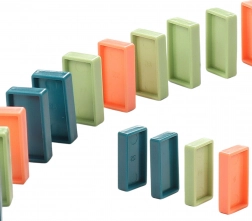 In de set zitten 60 plastic dominosteentjes in drie kleuren – ideaal voor fantasierijke routes en spectaculaire dominoreacties.