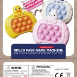Pop It ziet eruit als een gamecontroller met blauwe en roze knoppen en produceert leuke geluiden om het spel te stimuleren.