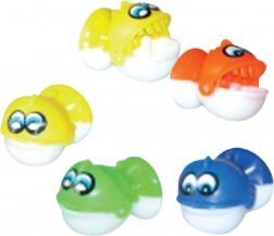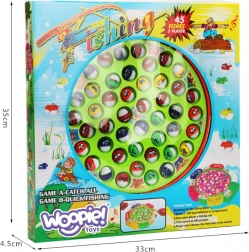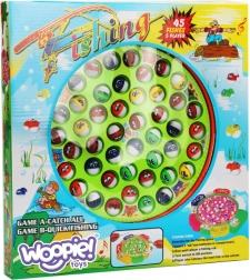 Zet de vijver aan, kies een hengel en ga op vissenjacht! Het spelbord draait soepel en de visjes verschijnen regelmatig wanneer ze hun mond openen. Jouw taak is om op het juiste moment een visje te haken en naar het mandje te leiden. Eenvoudige regels zorgen voor een snelle start en veel gelach.
