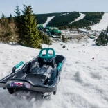 Geniet van winterpret met de bestuurbare Skipper titan bobslee, die hoge snelheid, betrouwbaar remmen en veilig sturen met het stuurwiel biedt. De massieve monoski-constructie zorgt voor uitstekende stabiliteit en een vloeiende glij, terwijl de frontale kreukelzone de veiligheid bij een botsing verhoogt.