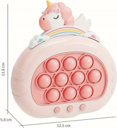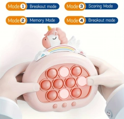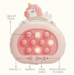 Het elektrische spel Eenhoorn Pop It biedt geweldig vermaak en een middel voor de ontwikkeling van kinderen vanaf drie jaar. Kinderen en volwassenen genieten van het indrukken van de bubbels en het competitie-element. Pop It spel biedt verschillende spelmodi die diverse vaardigheden ontwikkelen: