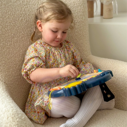 De multifunctionele knoppen bieden geluidseffecten, kinderliedjes, elektronische geluiden, de uitspraak van het Engelse alfabet en een drum. Plezier dat gehoor en ritme ontwikkelt.