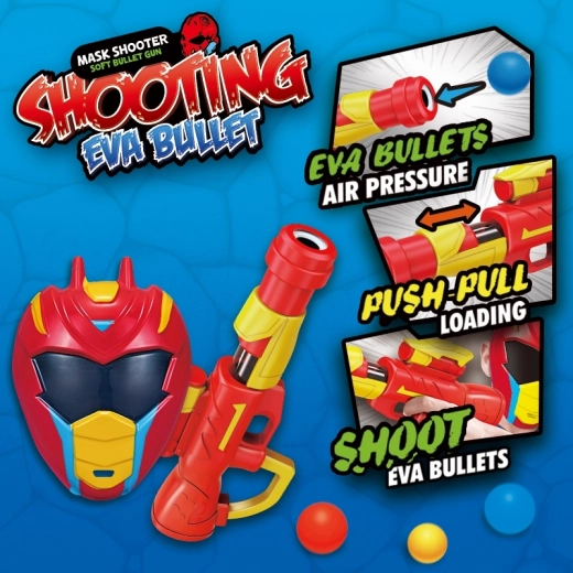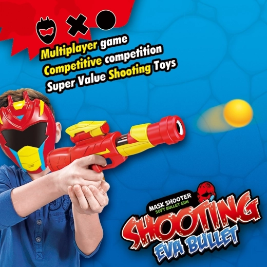 Met deze set beleven kinderen actievol maar toch veilig speelplezier. Het veermechanisme zorgt voor betrouwbaar afschieten van schuimballetjes zonder batterijen, de bediening is eenvoudig en ergonomisch voor kleine handen. Het stijlvolle masker met elastische band geeft het spel extra flair en prikkelt de fantasie.