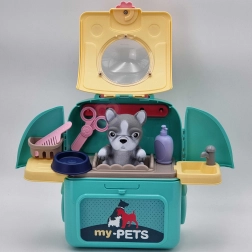 Bevat een hondjesfiguur, kam, schaartje, mandje voor accessoires en meer.