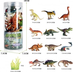 12 dinosaurussen, 6 aanvullende figuren (totaal 18 stuks)