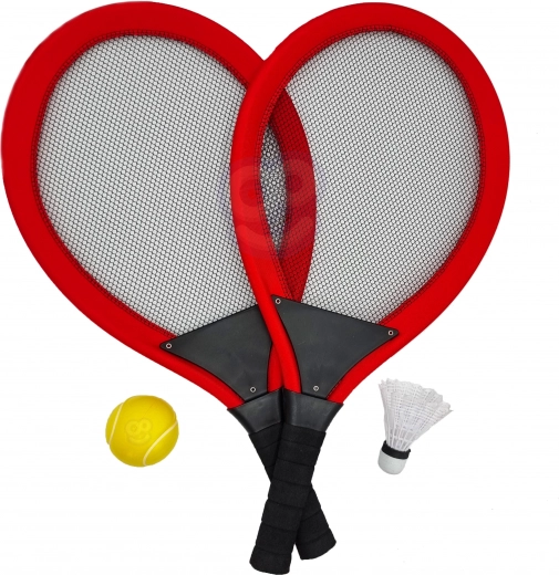 Grote tennis- en badmintonrackets voor kinderen Woopie met bal en mandje
