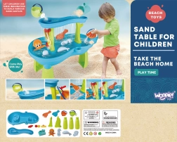De watertafel Octopus van het merk WOOPIE biedt een unieke ervaring met water en zand voor kinderen. Dankzij 18 accessoires zoals 3 vormen, octopus, gieter, mand, zandverzamelaar en 2 schepjes genieten kinderen van oneindige speelmogelijkheden. Water dat in het bovenste deel van de tafel wordt gegoten, kan door de openingen aan de onderkant stromen of de watermolens laten draaien. Geweldig om zowel thuis als buiten te spelen!